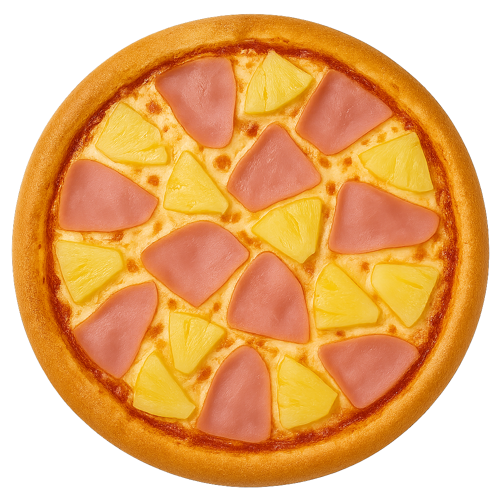 sos pomidorowy, mozzarella, szynka, ananas