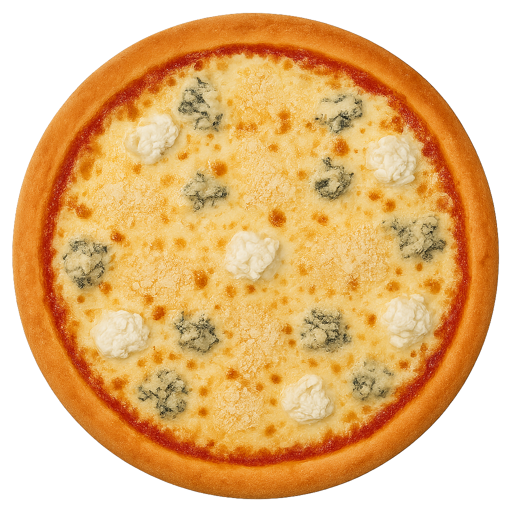 sos pomidorowy, ser mozzarella, gorgonzola, parmezan, ricotta